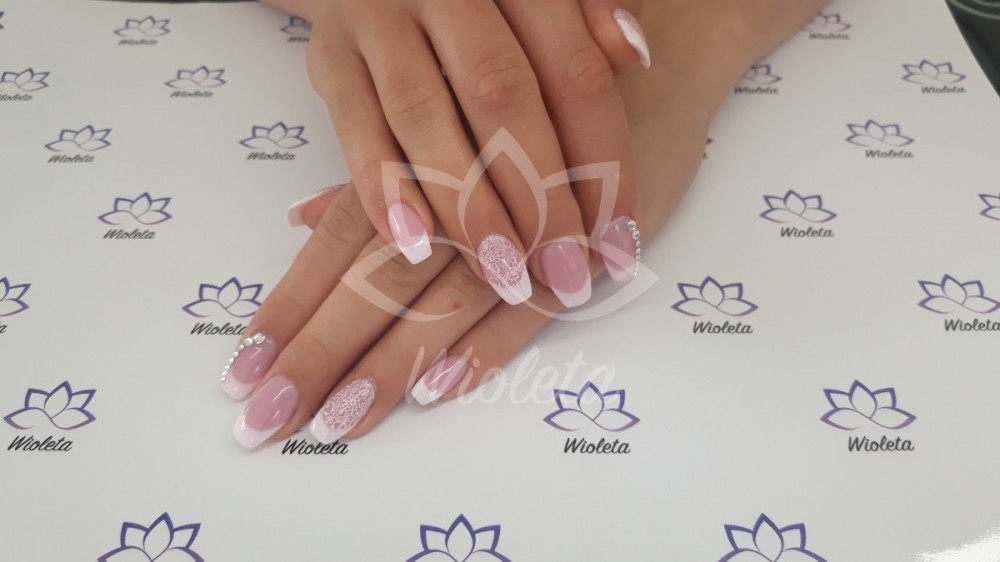 Przy użyciu kolorowych farbek akrylowych i precyzyjnych pędzelków (o zróżnicowanych rozmiarach i różnym typie włosia) jesteśmy w stanie ręcznie wymalować przeróżne wzorki. Ogranicza nas tutaj tylko wyobraźnia – możemy wyczarować na Waszych paznokciach, co tylko sobie wymarzycie! Czasem są to proste wzory (mało skomplikowane kropki, kreski czy kwiatuszki) a innym razem bardziej precyzyjne zdobienia (dość wymienić wzory geometryczne, rozmyte linie przypominające marmur czy skomplikowane, kwiatowe motywy wykonane metodami One Stroke czy Watercolor). Warto podkreślić, że dysponujemy rozmaitymi kolorami farbek akrylowych, dzięki czemu możemy tworzyć wielobarwne i wielowymiarowe kompozycje.