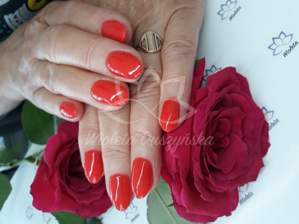 Czerwień – najbardziej kobiecy i seksowny ze wszystkich kolorów – jest tak efektowna, że w zasadzie nigdy nie wychodzi z mody. Czerwone paznokcie to zawsze dobry pomysł – klasyczny manicure automatycznie ożywia stylizację i dodaje pewności siebie. Tej wiosny i tego lata możesz postawić na czerwień w jaśniejszym, podbarwionym pomarańczem odcieniu. Taki energetyzujący kolor będzie idealnie korespondował z tym, co dzieje się za oknem!